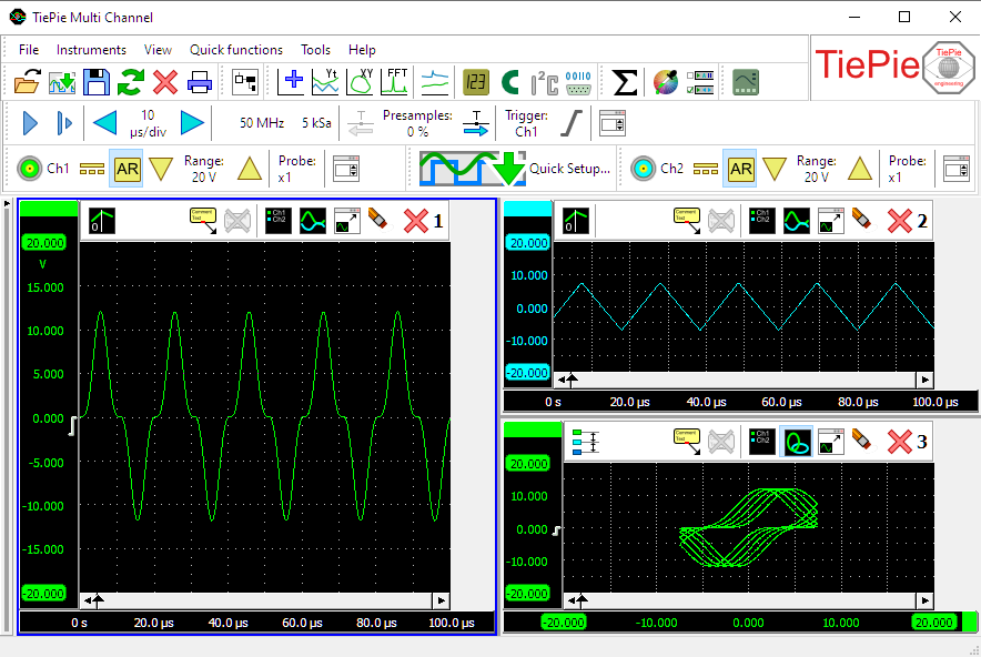 您需要6通道示波器嗎?或者您需要8通道數字轉換器?甚至可能需要10通道數據採集器(DAQ)或12通道數據採集系統?TiePie的MultiScopes為您提供所需任意數量輸入通道的儀器。這些通道可以是單端輸入通道、差分輸入通道,或是兩者的組合。